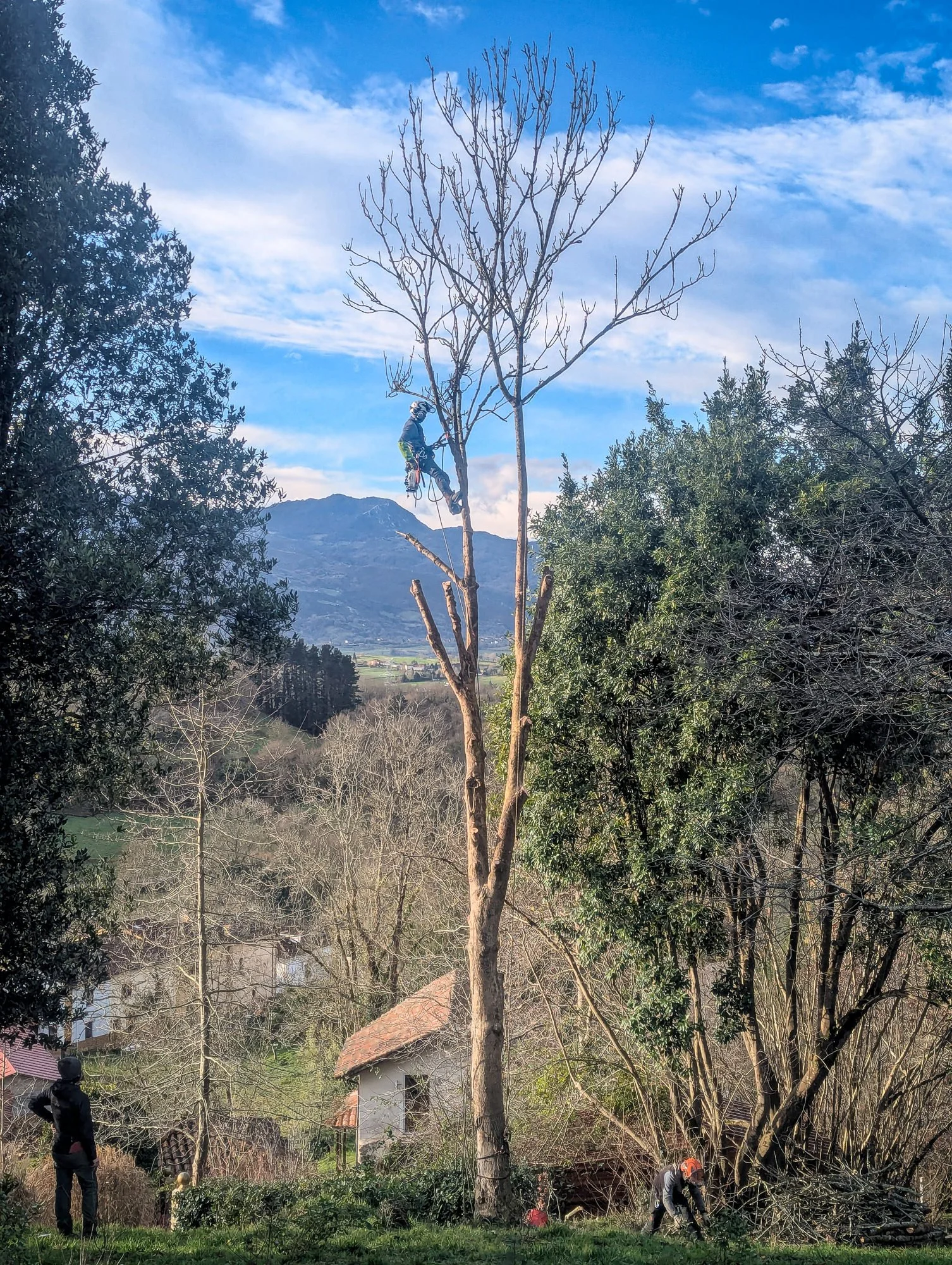 And for once, I enlisted the professionals. I’ll turn my hand to most things but felling two dead/dying trees, both 50 feet tall, one hanging over a sitting area, the other a power line, is probably beyond me. I was briefly tempted to get a friendly neighbour with a tractor, a chainsaw and a long rope to have a crack at the job but thought twice. Discretion being the better part of valour, and all that.